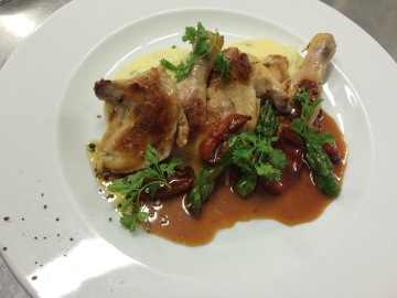 Come to taste our Baby chicken cooked sous vide with mashed lemon potatoes or Fries squids and vegetable rous.