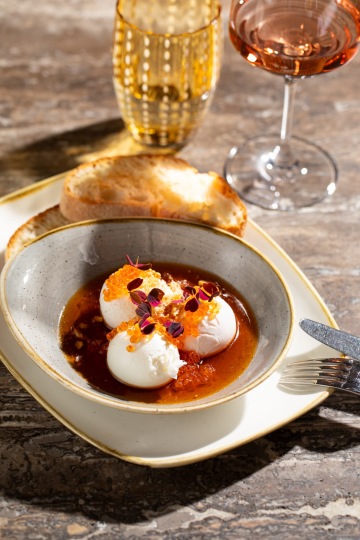 Poached eggs, lobster butter, red caviar