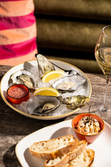 Ostriche servite con pane, burro e maionese.